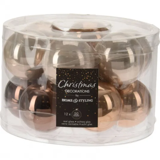 Set 12 globuri Craciun Home&styling, sticla, 5 cm, auriu/aramiu perlat