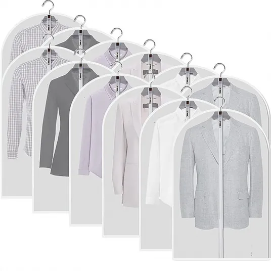 Set 12 huse imbracaminte, Axroad Mall, Rezistent la praf, Impermeabil, Fermoar complet, Reutilizabile, Usoara, 3 dimensiuni, Pentru depozitare in dulap si calatorii, PEVA, 60*100cm, 60*120cm, 60*140cm, Alb