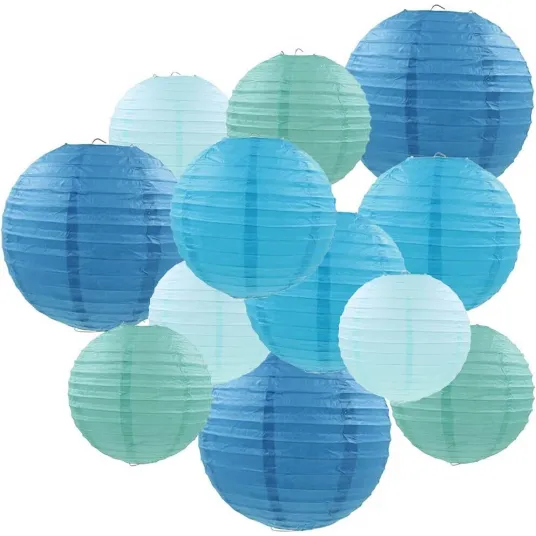 Set 12 Lampioane Suspendate, Albastru in Degrade, 15x20x25x30cm, Pentru Petreceri si Decor Acasa