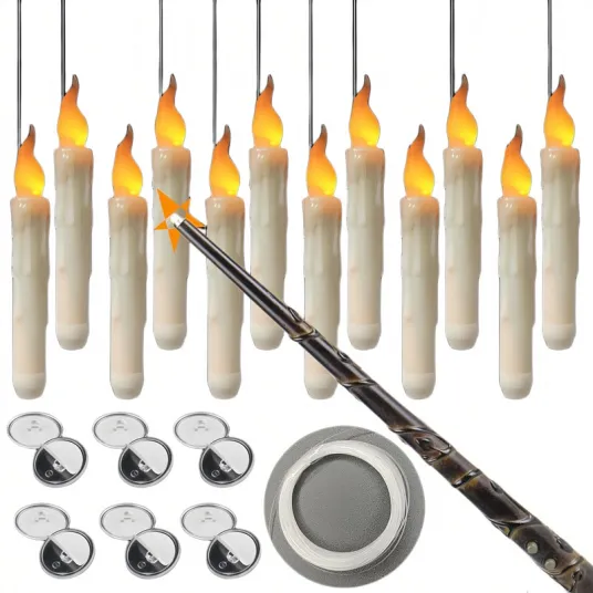 Set 12 lumanari plutitoare fara flacara LED, telecomanda cu bagheta magica, Alb