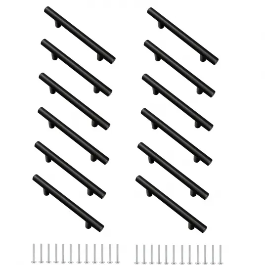 Set 12 manere mobila, Axroad Mall, Distanta gauri 128mm, Suruburi de fixare, Usor de montat, Rezistent la coroziune, Nu rugineste, Design ergonomic, Pentru bucatarie, dormitor, camera de zi, Inox, 200x12x31mm, Negru
