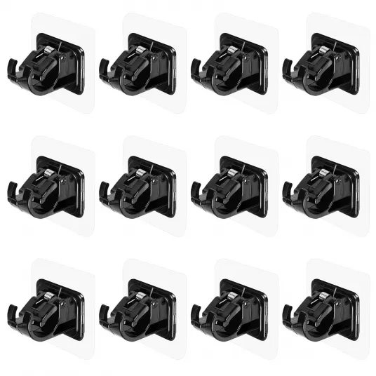 Set 12 suporturi pentru bare de perdea, Axroad Mall, Autoadezive, Impermeabil, Capacitate mare de transport, Usor de instalat, Pentru acasa, baie, bucatarie si uz hotel, Plastic, 6 x 6 cm, Negru