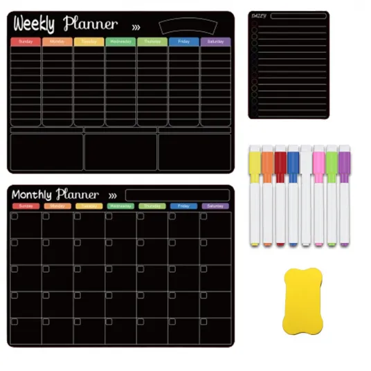 Set 12 Tabla magnetica de frigider, JENUOS®, cu 8 markere frigider, Stergator cu burete, 42x30 cm/15x20 cm, Magnet din cauciuc, PET, NegruSet 12 Tabla magnetica de frigider, JENUOS®, cu 8 markere frigider, Stergator cu burete, 42x30 cm/15x20 cm, Magnet din cauciuc, PET, Negru223182460223182460