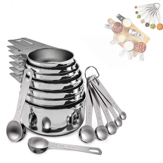 Set 14 ustensile pentru bucatarie cu 7 linguri de masurat si 7 cupe de masurat, tabel pentru masurare cu suport magnetic, otel inoxidabil