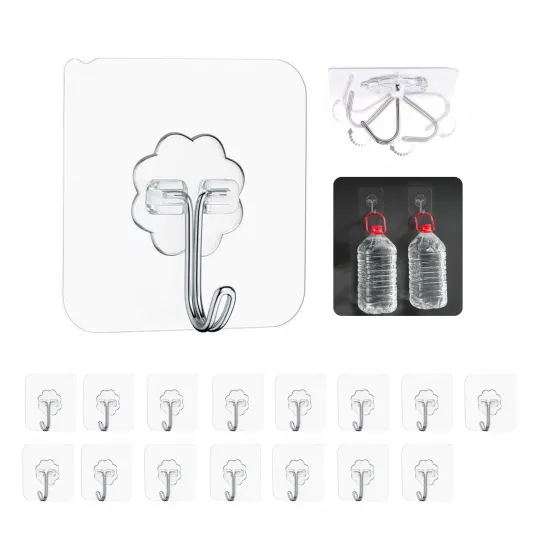 Set 15 carlige autoadezive din otel inoxidabil, rezistente la apa si ulei, reutilizabile, argintiu