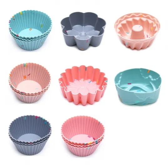 Set 16 forme briose, GOGOU, silicon, forma de copt, mini tarte, 6.5 cm, multicolor