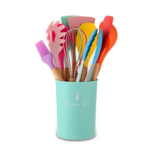 Set 17 ustensile bucatarie, Silicon/Lemn, Multicolor