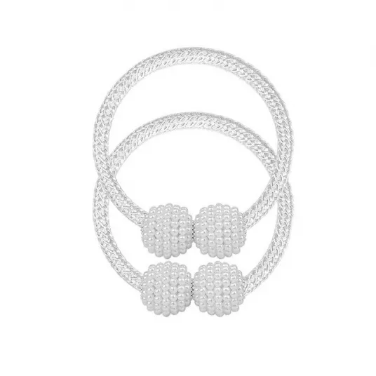 Set 2 Agatatori Magnetice pentru Perdele SUIFAYIO, Design cu Perla, Alb, 49cm