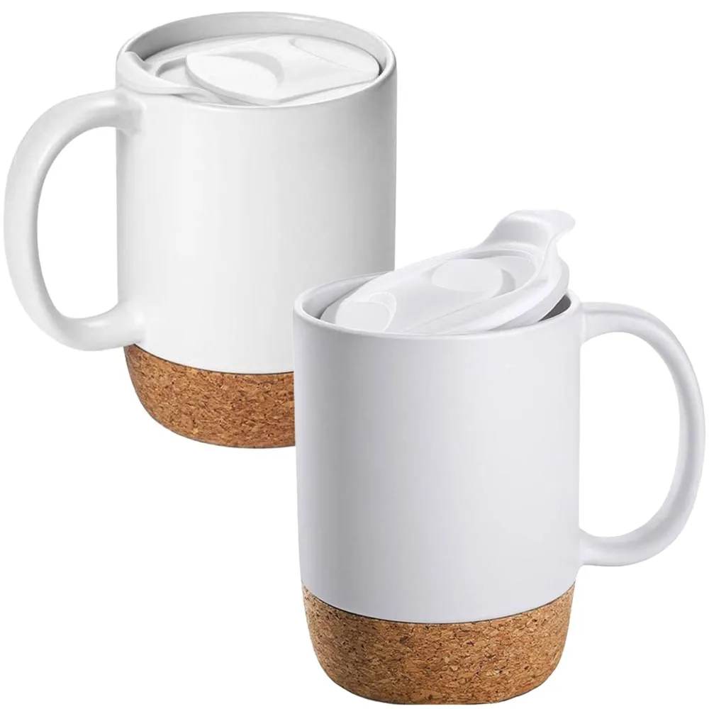 Set 2 cani cafea/ceai, Quasar & Co.®, pretabile voiaj/calatorie, cu capac to go, baza de pluta, ceramica, 400 ml, alb