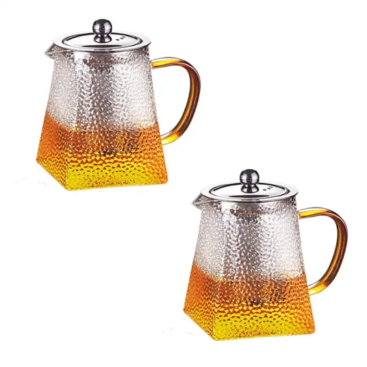 Set 2 ceainice, Quasar & Co.®, recipiente pentru ceai/cafea cu infuzor si capac, 2 x 650 ml, sticla borosilicata/otel inoxidabil, transparent