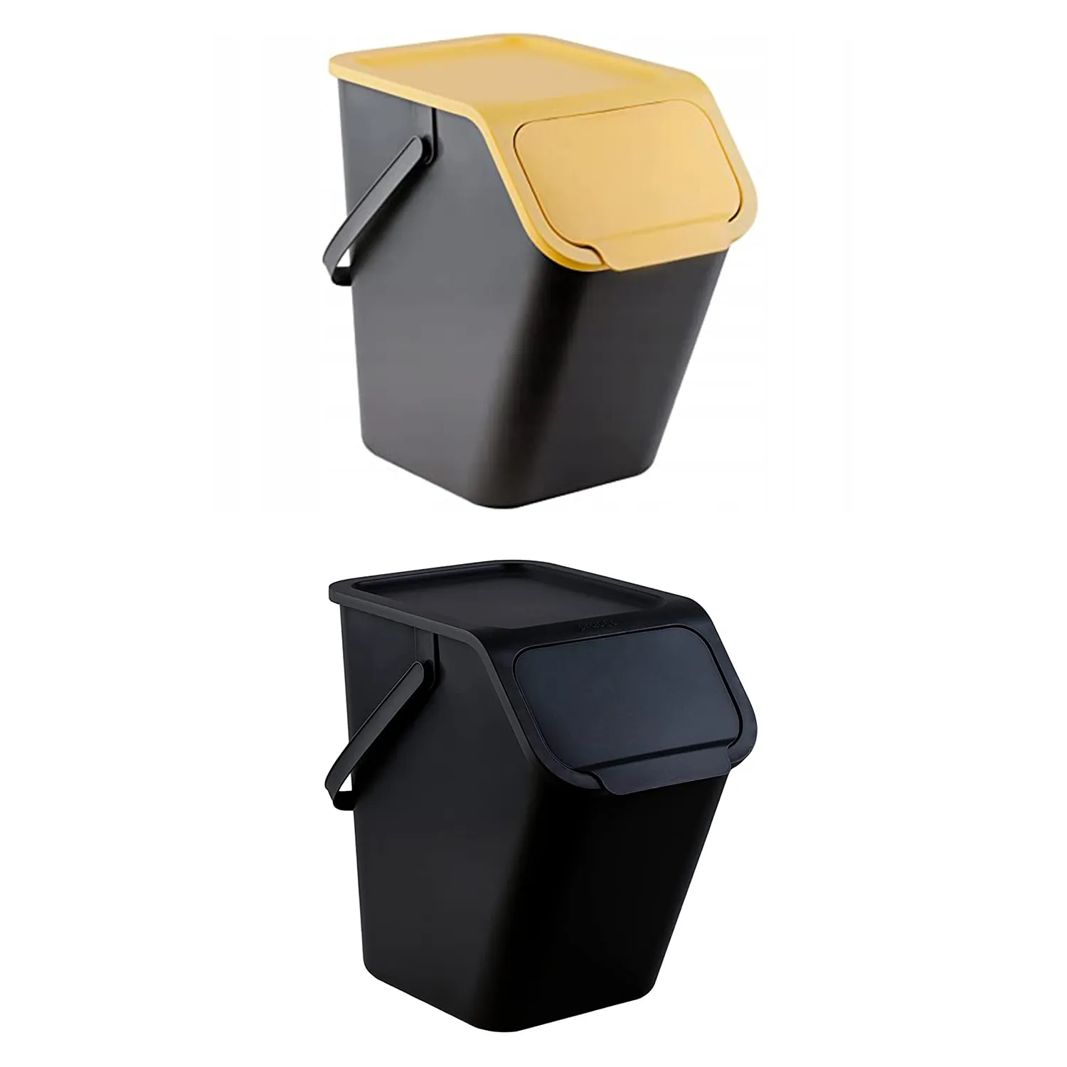 Set 2 cosuri de gunoi, Practic, Polipropilena, 2 x 25 l, Negru/ Galben