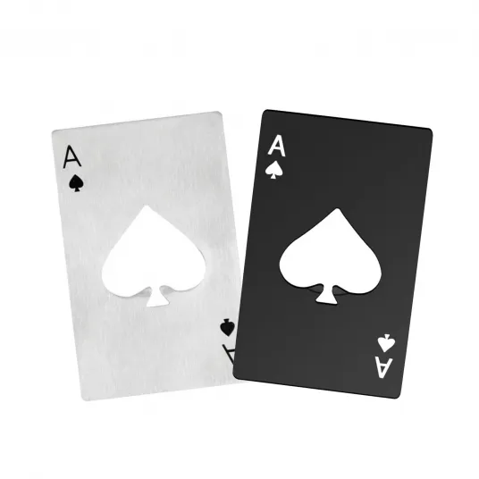 Set 2 Desfacator bere, enkourakoko®, sticle, otel inoxidabil, forma de carte de joc as de pica, compatibil portofel, Negru/Argintiu