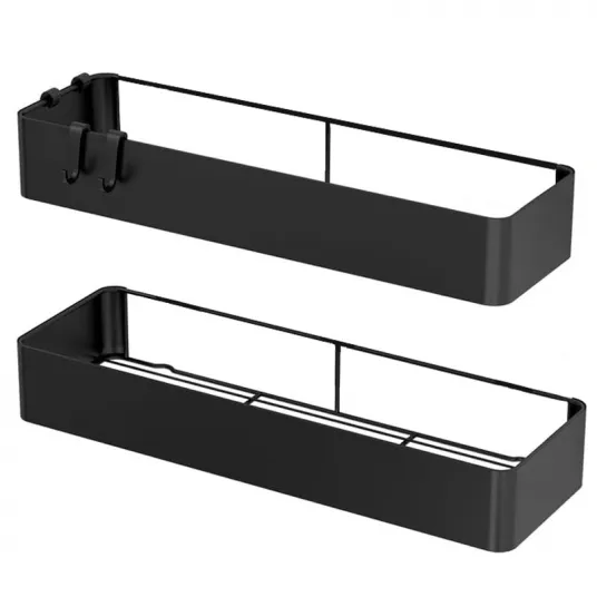 Set 2 Etajera pentru baie si dus, organizator baie, din otel inoxidabil, pentru depozitare, Amtok, Include patru carlige mici, NegruSet 2 Etajera pentru baie si dus, organizator baie, din otel inoxidabil, pentru depozitare, Amtok, Include patru carlige mici, Negru702036633702036633