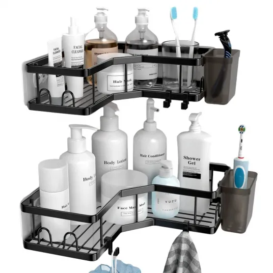 Set 2 etajere pentru dus pentru colt, Otel inoxidabil, Negru