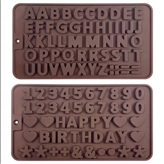 Set 2 forme ciocolata, Silicon, Model Litere/Cifre, 21x11.5cm, Maro