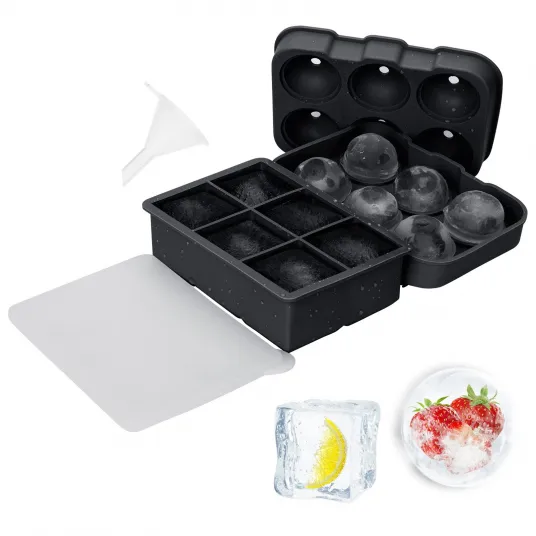 Set 2 forme gheata, cuburi mari si bile, silicon alimentar, negru, 18x12x5cmSet 2 forme gheata, cuburi mari si bile, silicon alimentar, negru, 18x12x5cm223195434223195434