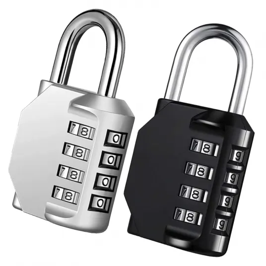Set 2 lacate cu cifru, Axroad Mall, 4 cifre repozitionabile, Inchidere fara cheie, Rezistenta la apa si rugina, Anti-furt, Usor de transportat, Pentru dulapuri, cutie de instrumente, Aliaj de zinc, 42x21x80mm, Argintiu/Negru