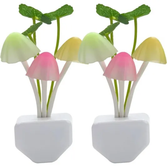Set 2 Lampi de veghe LED JENUOS, senzor zi-noapte, forma de ciuperca, multicolor