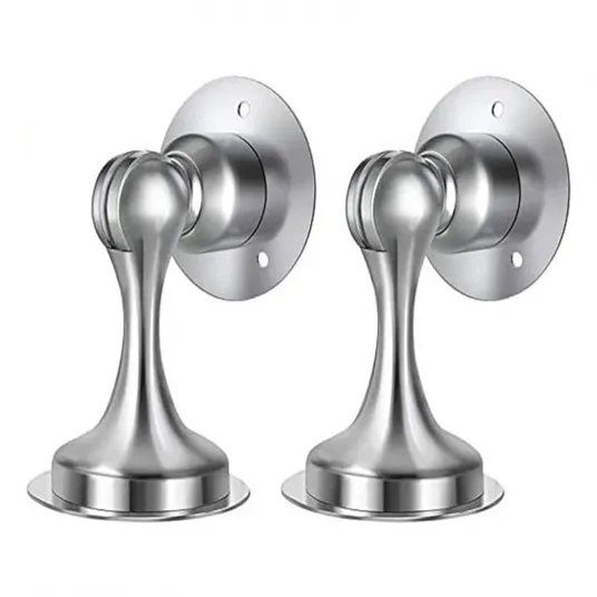 Set 2 Opritoare de usa, Zggzerg, Autoadeziv, Fara gaurire, Suruburi pentru montare mai puternica, Pentru montare pe perete si pe podea, Pentru diverse tipuri de usi, Din otel inoxidabil, Argintiu