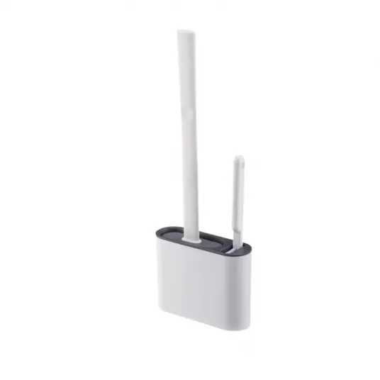 Set 2 Perie WC din silicon pentru toaleta, JENUOSВ®, Cap Flexibil, fixare pe perete, cu recipient din plastic, Cap Flexibil, aspect modern, Alb