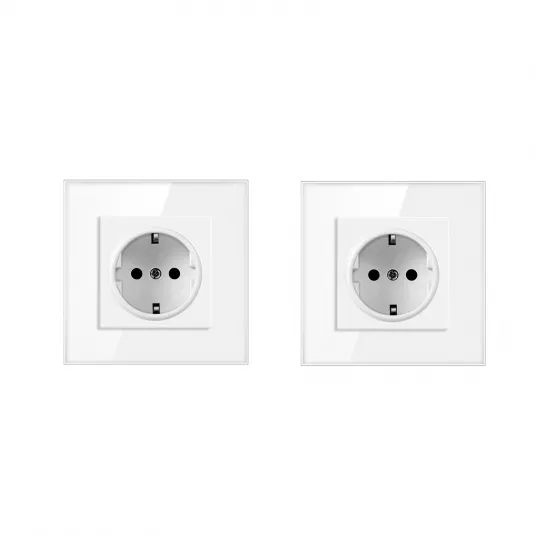Set 2 Priza simpla, SINBINTA, 16A, 220V-250V, 50/60HZ, Rama din Sticla, Protectie pentru Copii, Doua metode de instalare, pentru familii, birouri, hoteluri, spitale, fabrici, ABS, 86 x 86mm, Alb