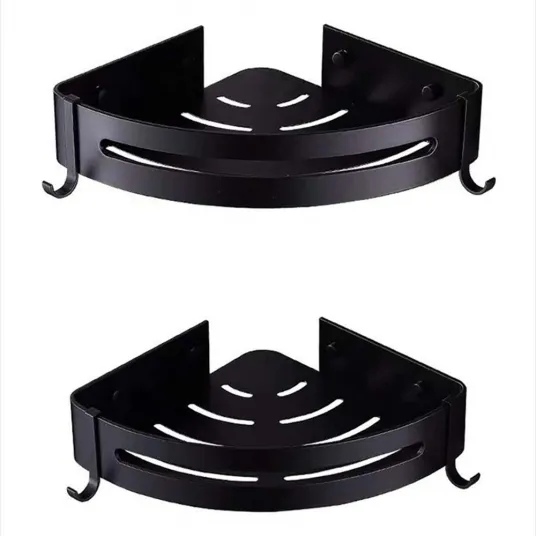 Set 2 rafturi de baie, MOSMAOO®, Aluminiu, Pentru depozitare, 30.5 x 22.5 x 4.5 cm, Negru