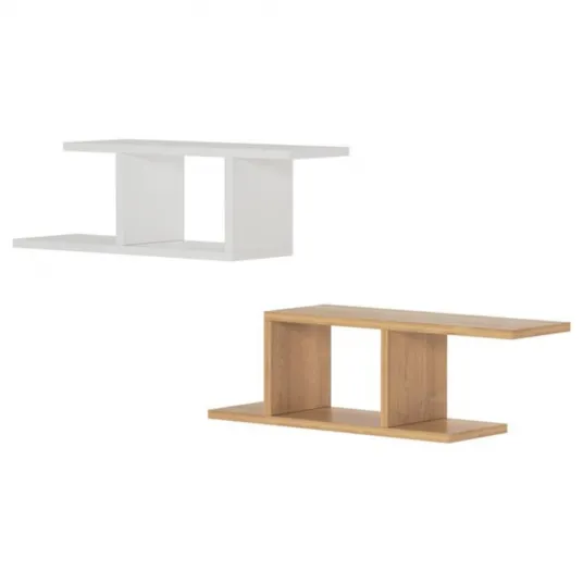 Set 2 rafturi perete, Quasar & Co.®, mobilier living/dormitor, 74.5 x 20 x 23 cm, MDF, alb/stejar