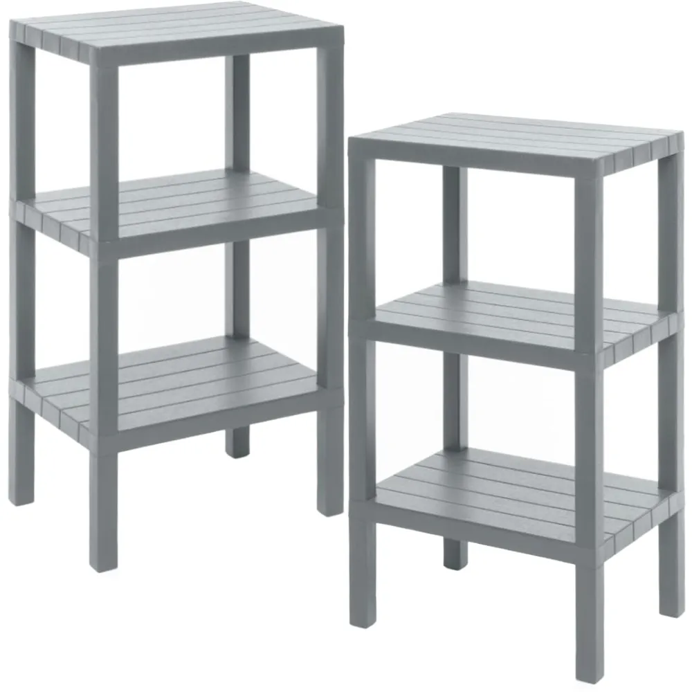 Set 2 rafturi universale, Quasar & Co.®, etajere cu 3 polite, polipropilena, 73.5 x 38 x 29 cm, gri
