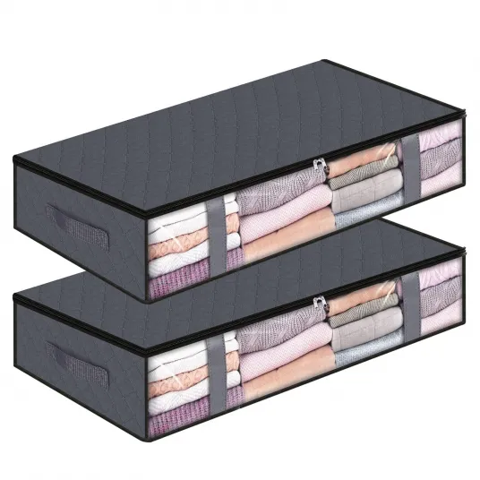 Set 2 saci pentru depozitare imbracaminte, 40L, 60x45x15cm, Cu fermoar, Gri