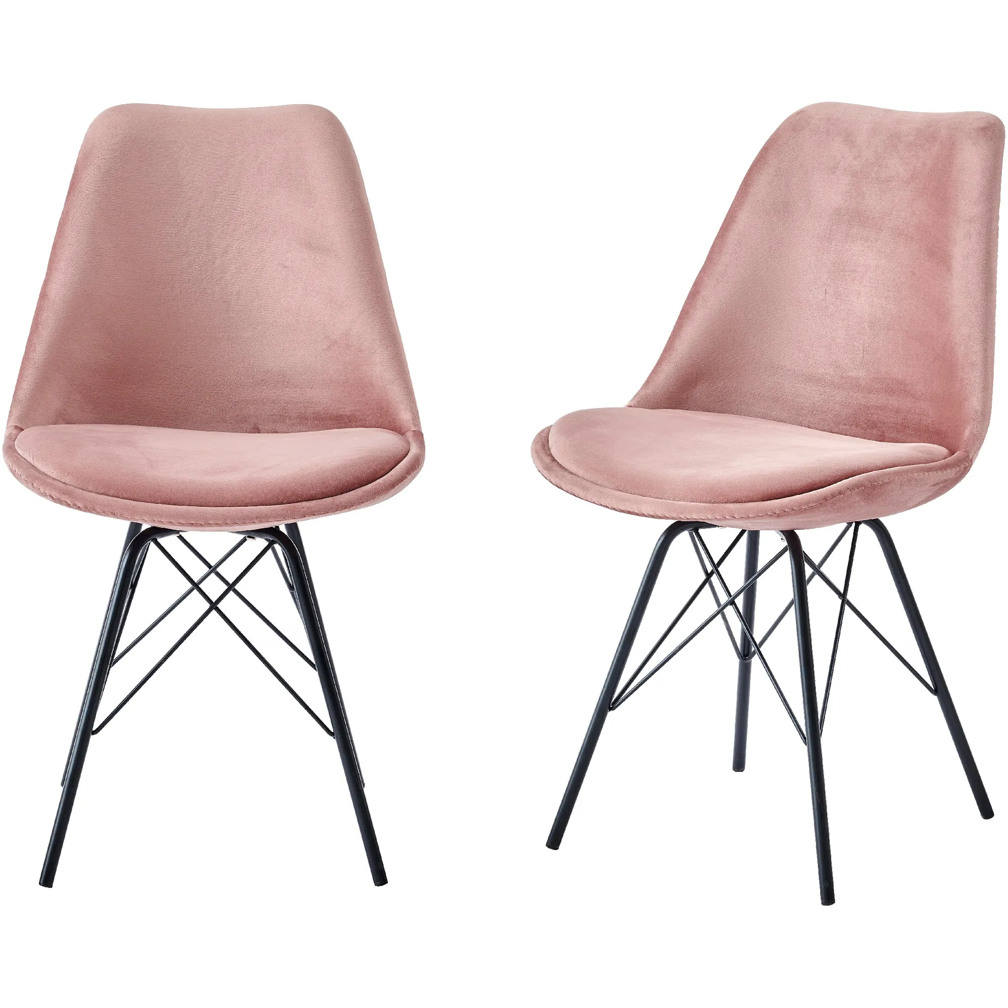 Set 2 scaune dining / bucatarie Kring Mila, tapiterie catifea, picioare metal, Roz Piersica