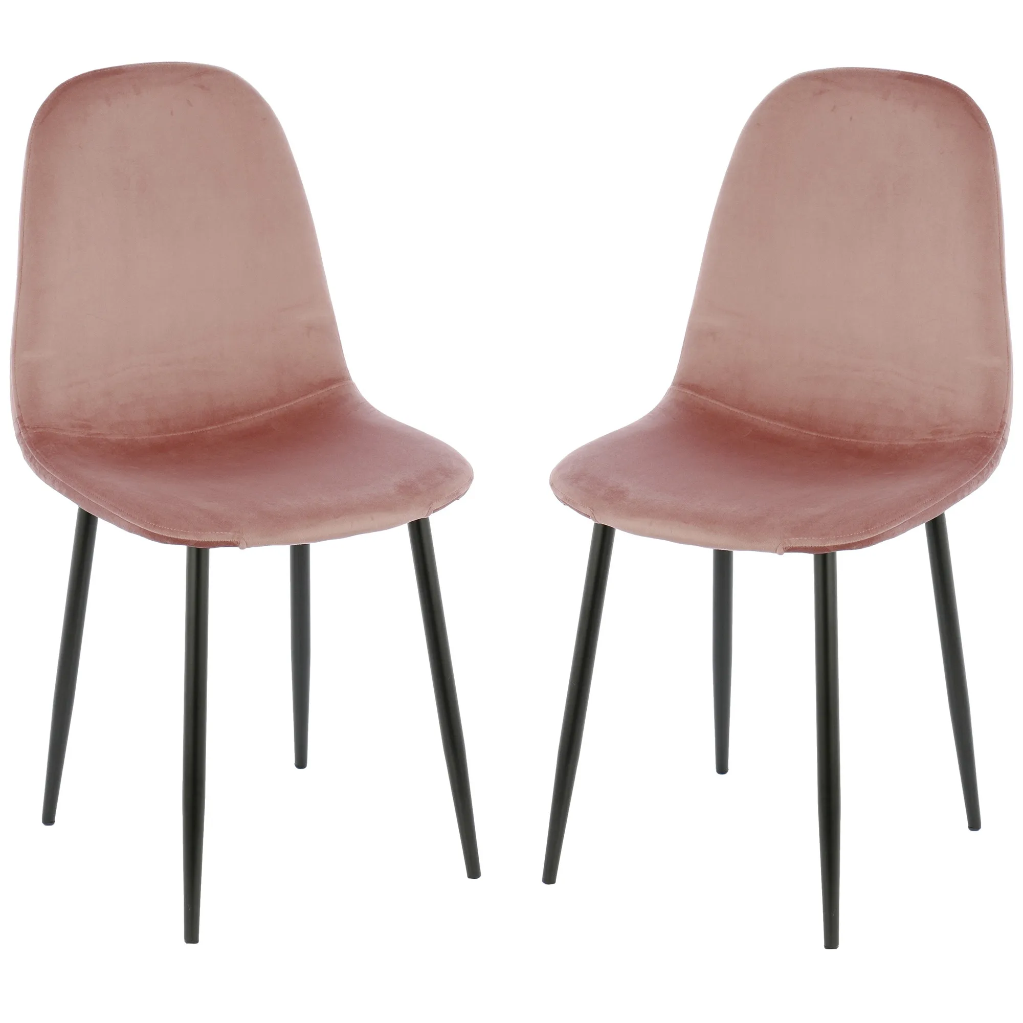 Set 2 scaune dining / bucatarie Kring Miles, cadru metal, tapiterie catifea, Roz