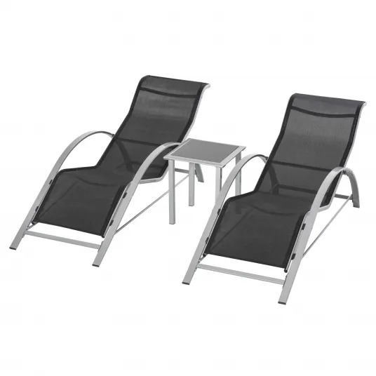 Set 2 sezlonguri cu masa de gradina, Outsunny, Metal/Textil, Rezistent la apa, 59 x 169 x 66 cm, Negru
