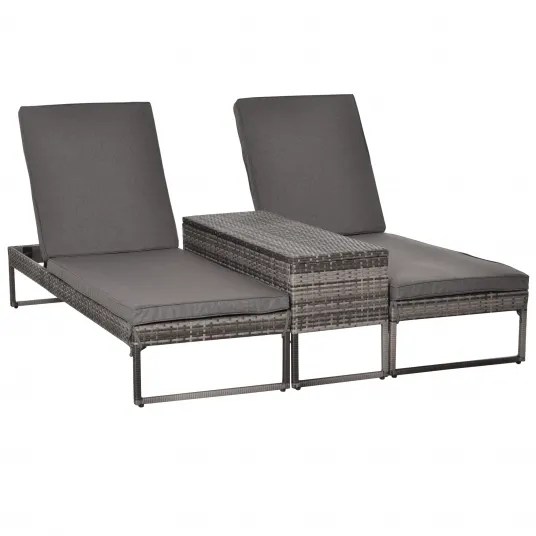 Set 2 Sezlonguri cu Masuta din PE Rattan Gri, Outsunny