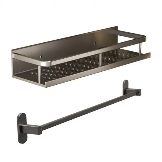 Set 2 suporturi de perete pentru baie, montare prin lipire sau insurubare, aluminiu