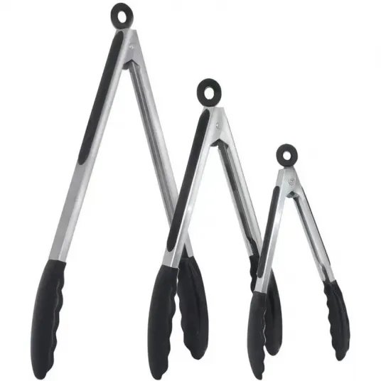 Set 3 clesti de bucatarie, inox cu varfuri de silicon, negru, 30cm/23cm/18cm