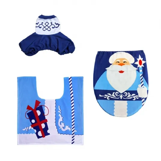 Set 3 covorase pentru baie de Craciun, decor cu gheata si zapada, albastru