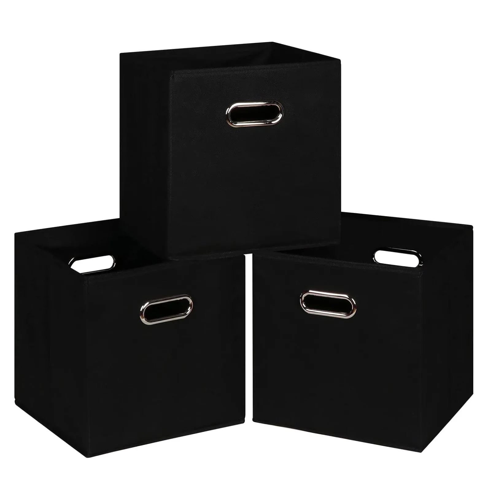 Set 3 cutie depozitare, Axroad Mall, Pliabila, Reciclat, Catarama metalica cu doua fete, Pentru depozita pulovere, jucarii, pilote, articole diverse, imbracaminte, haine murdare, Carton, 28 x 28 x 28 cm, Negru