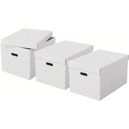 Set 3 cutii depozitare Esselte Home Recycled, carton, 51x35x30 cm, cu capac, alb
