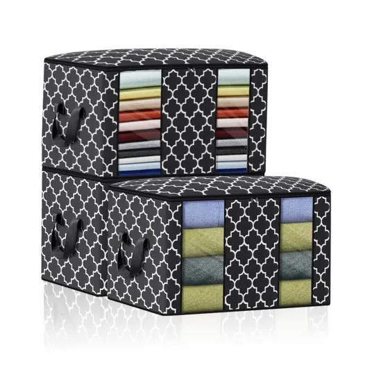 Set 3 cutii depozitare, zggzerg, Cu maner ranforsat si Fereastra transparenta, Pliabila, Economie de spatiu, pentru haine, paturi, plapumi, perne, lenjerii de pat, jucarii, 100L, 63x45x36cm, Negru