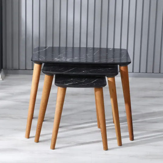 Set 3 masute auxiliare Miria, marmura negru, 60 45 30x40x40 45 50 cm