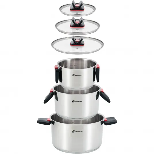 Set 3 oale cu capac (6 piese) Schmitter, inductie, inox, 16x10cm/1.9L, 20x12.5cm/3.6L, 24x16.5cm/7L