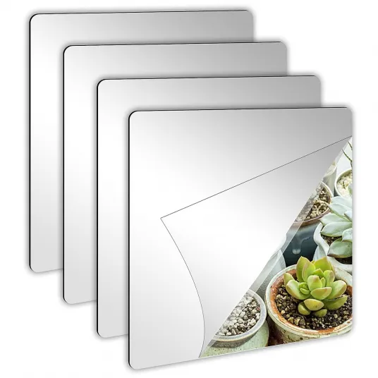 Set 3 oglinda autoadeziva pentru decor si design interior, Axroad Mall, Model Patrat, Usor de asamblat, Rezistent la socuri, Siguranta ridicata, Gama larga de aplicatii, Acrilice, Argintiu, 20×20cm×2mm