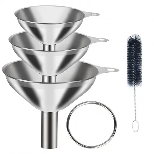 Set 3 palnii inox, NUODWELL, Cu perie de curatare, maner ergonomic antiderapant pentru curatare si depozitare usoara, pentru transferul de parfumuri, ingrediente lichide si pulberi, argintiuSet 3 palnii inox, NUODWELL, Cu perie de curatare, maner ergonomic antiderapant pentru curatare si depozitare usoara, pentru transferul de parfumuri, ingrediente lichide si pulberi, argintiu701909405701909405