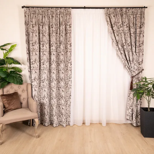 Set 3 piese Hiko, doua draperii Chenille maro 2x350x245 cm si perdea Ana voal 700x245, cu rejansaSet 3 piese Hiko, doua draperii Chenille maro 2x350x245 cm si perdea Ana voal 700x245, cu rejansa222766461222766461