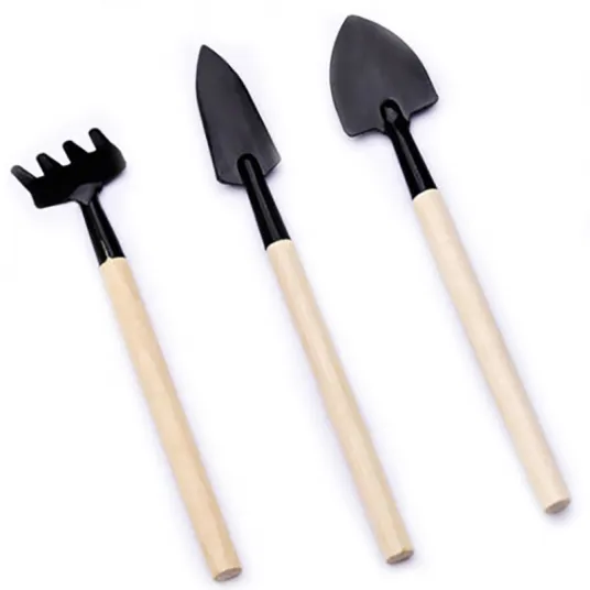 Set 3 unelte gradinarit, Ranpo, Metal/Lemn, Negru/Maro