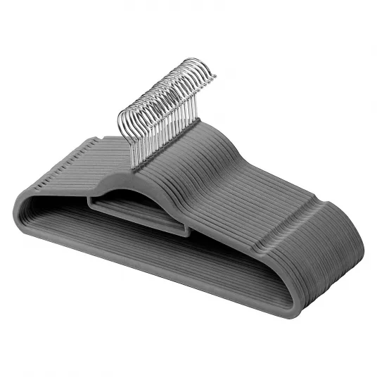 Set 30 umerase catifea, zggzerg, Carlig rotativ 360 °, Economie de spatiu, Cu 2 crestaturi, Antiderapant, Design rotunjit pentru a proteja umarul hainei de deformare, pentru prastie, paltoane, jachete si costume, 45x23 cm, Gri