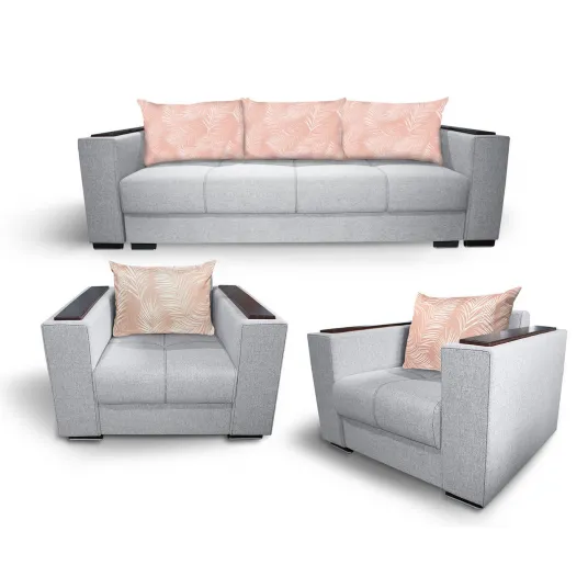 Setul 3+1+1 Solis este alcatuit dintr-o canapea cu 3 locuri si 2 fotolii fixe.