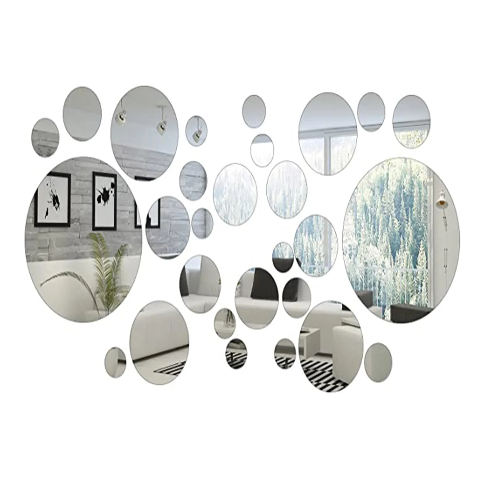 Set 32 Oglinzi din Sticla Acrilica, Darklove, model rotund, rezistent la apa, Pentru Acasa Camera de zi Dormitor Canapea TV fundal de perete decorare, Dimensiuni multiple, silvery