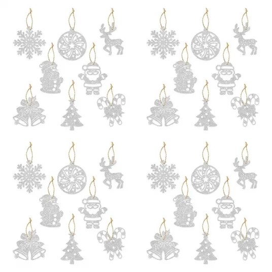 Set 32 ornamente Craciun TasyPins, 8 modele, alb, 10x10cm