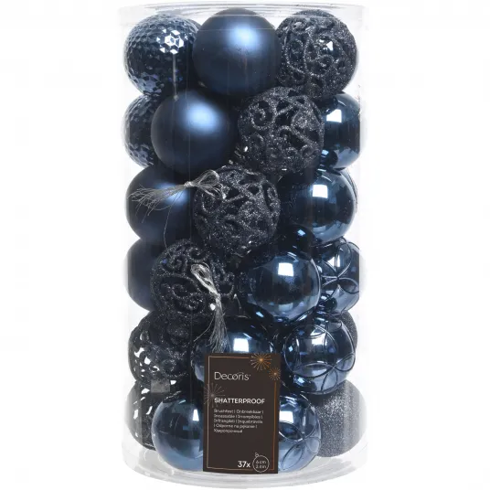 Set 37 globuri Craciun Decoris, diametru glob 6 cm, plastic, finisaje diverse, bleumarin